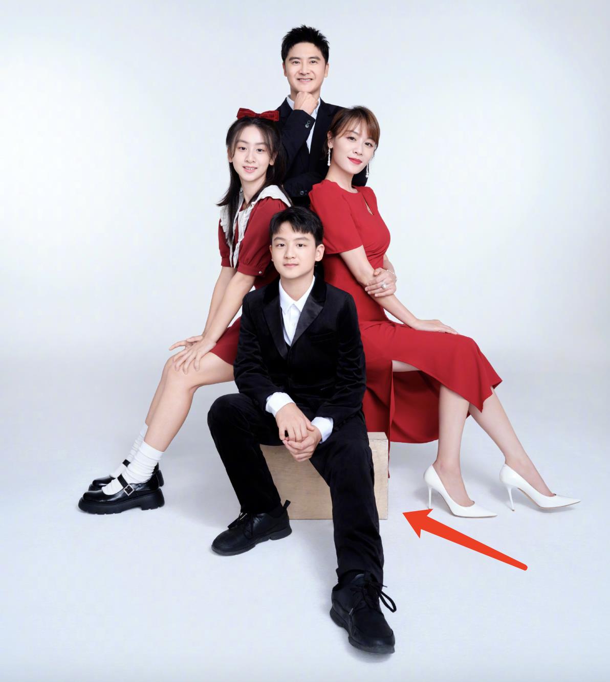 一家四口搭着彼此的肩膀,14岁森碟身穿红色连衣裙,披散着长发,戴着蝴蝶结,少女感爆棚,已经和一米七的妈妈一样高。而叶一茜则身穿红色礼裙,腰肢纤细,小腹平坦,好身材展现得淋漓尽致。11岁的小亮仔和姐姐也只有半个头的差距了,看这趋势可能会比田亮更加壮硕。