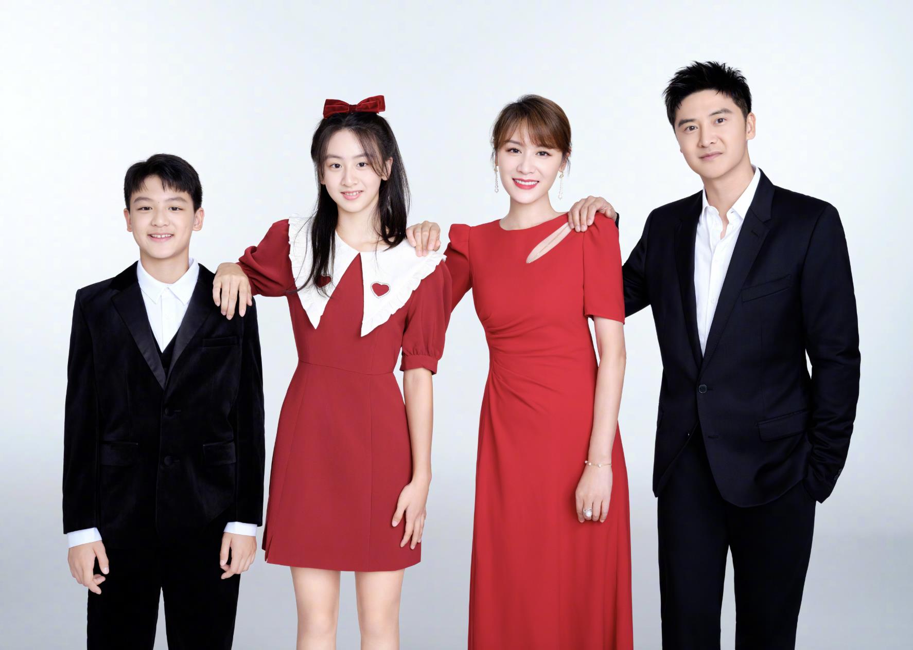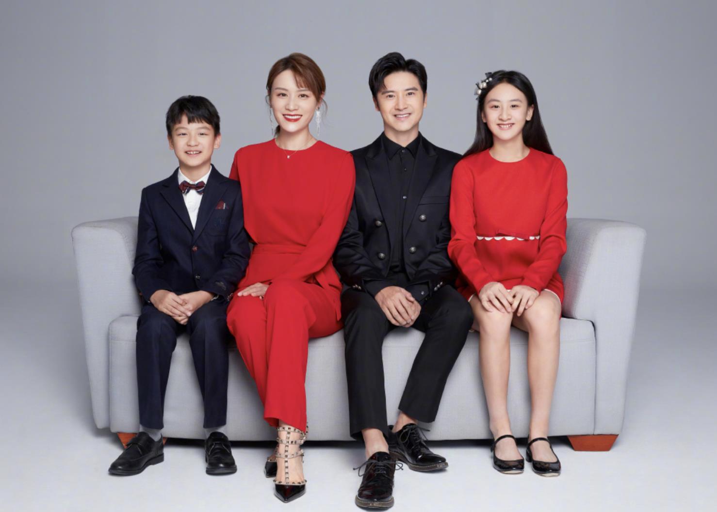 1月21日除夕,田亮分享全家福,和往年一样,全家都会穿白黑西装和红色礼裙,以白色背景拍全家福,记录一家四口这一年的变化。