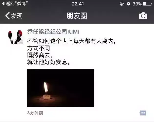 就在吃瓜群众还在震惊中,乔任梁经纪公司在朋友圈发文哀悼确认,死者确系乔任梁。证实了此前警方通报里在桃浦地区死亡的28岁男性乔某某正是演员乔任梁。但截至目前,尚未获得警方和经纪公司的官方确认。