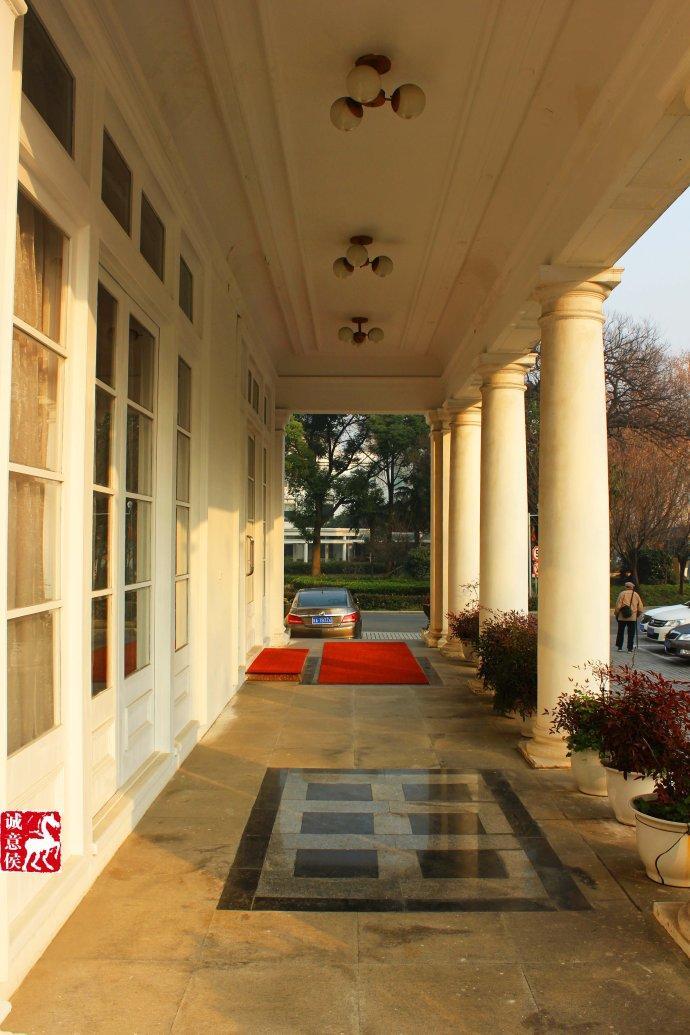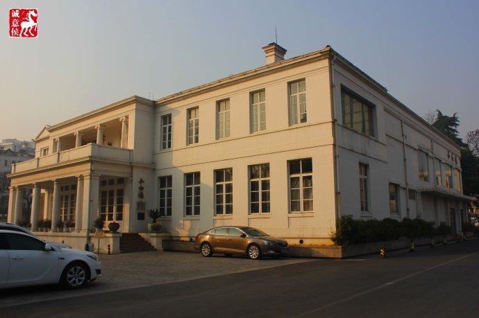 宾馆之内,点缀着数座建筑。其中有一座白色墙身、暗红色瓦顶的欧风建筑,是中华民国时期的英国驻华大使馆。立面严谨典雅、气度雍容华贵。