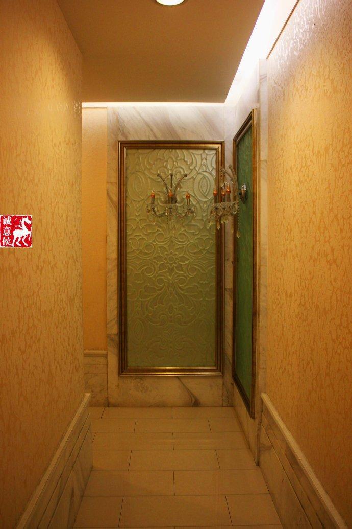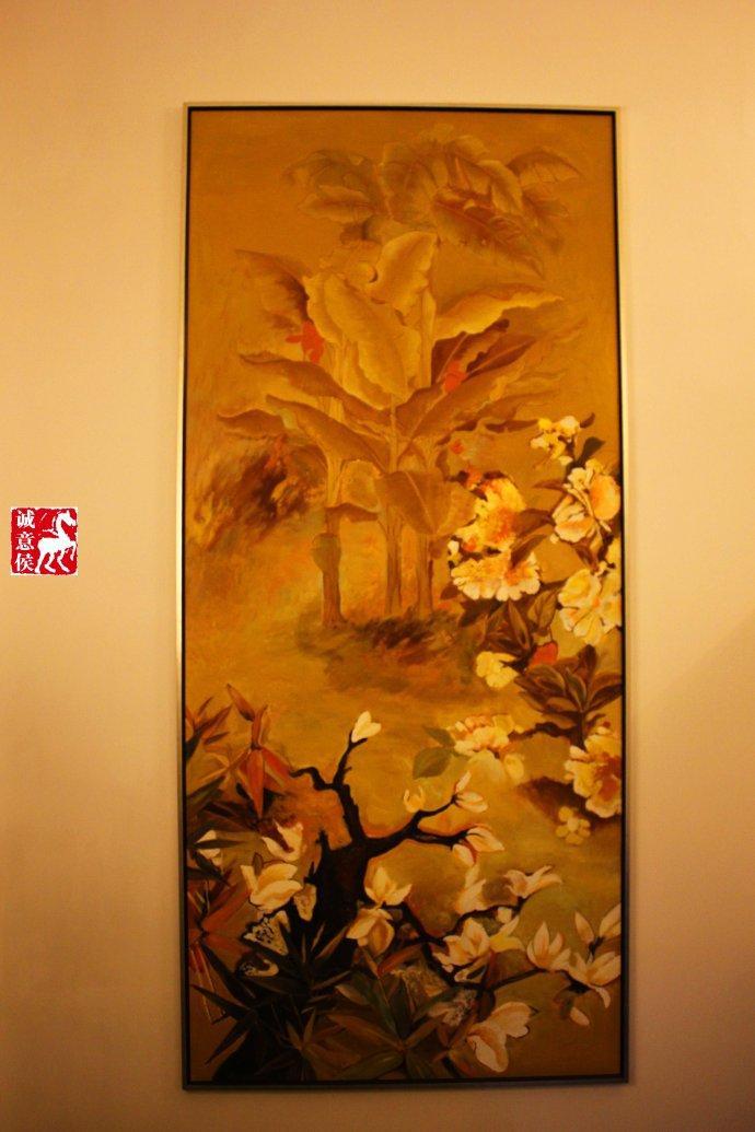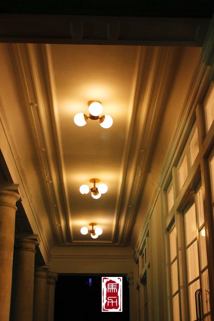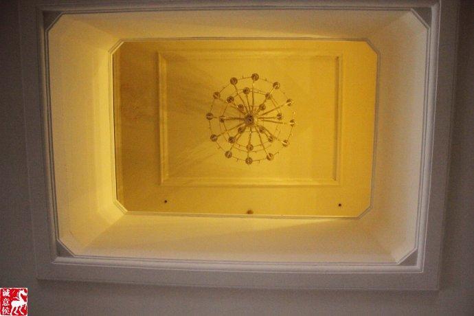 门廊宽大,在晚上亮起令人眩晕的吊灯,光线向上,照射到顶棚,绽开斑斓的花瓣。