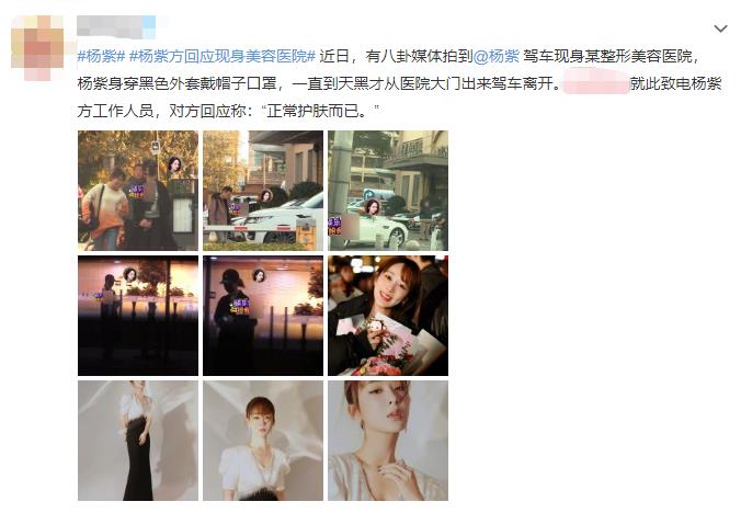 此前有媒体拍到杨紫驾车前往整容医院。画面中,杨紫驾驶一辆白色豪华轿车抵达医院门口,门上清晰地写着"整形美容医院",将车停进停车场后,杨紫与她的助理一同下车。