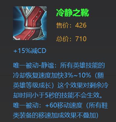 铭文提供6%的冷却缩减,冰痕之握提供10%的冷却缩减,还有就是冷静之鞋提供15%的冷却缩减,被动还有一个随着等级提升而减少冷却缩减的效果,最高额外能够获得10%的冷却缩减。对于夏侯惇来说,二技能的冷却只要少有5秒就行了,因为夏侯惇的护盾持续时间也是5秒,这样就能够无限刷盾了。