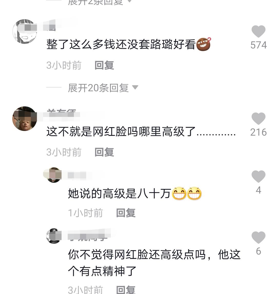 网红脸哪里高级了,可能是何婧婧在意的是八十万,但这个真的像诊所整出来的。