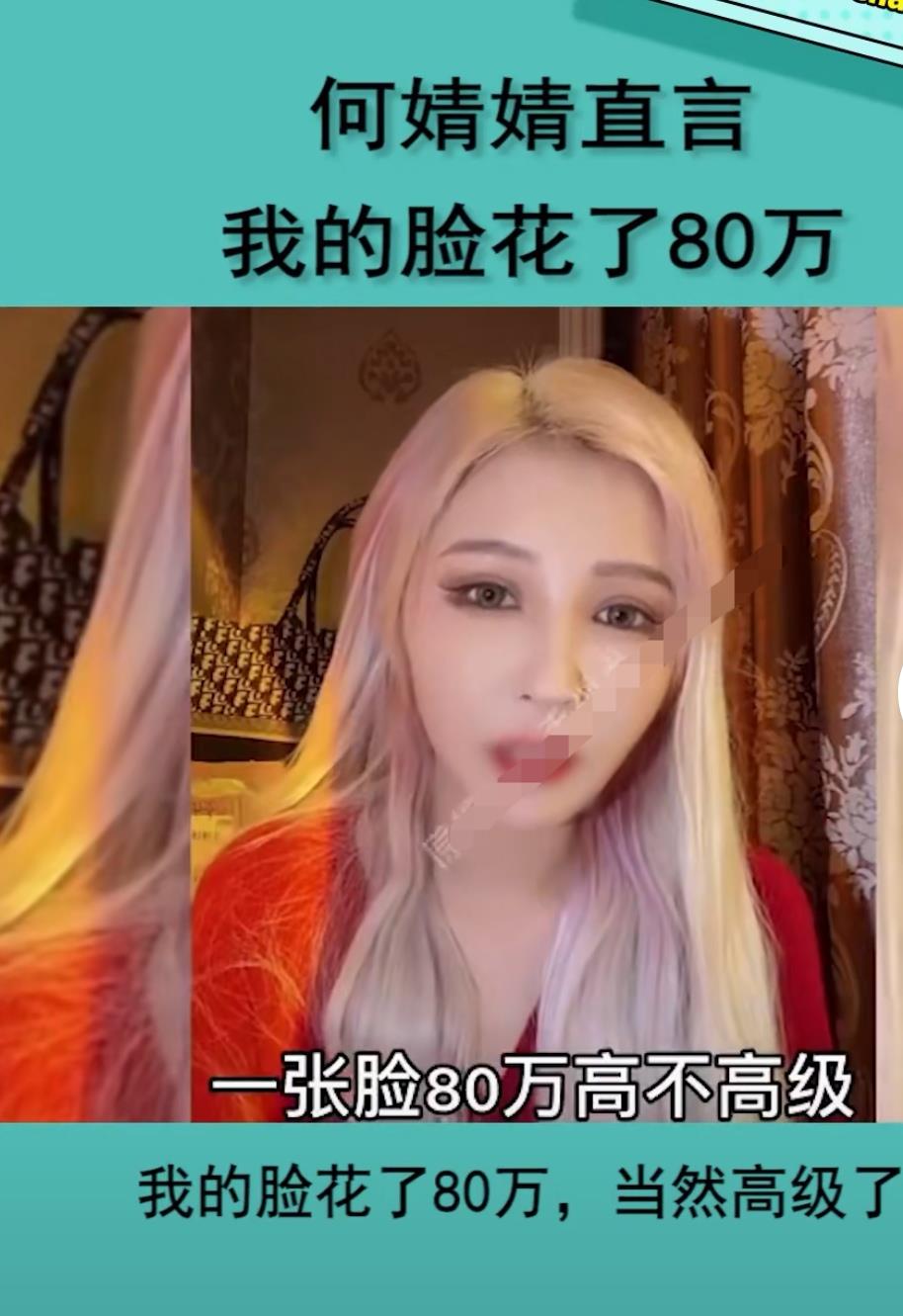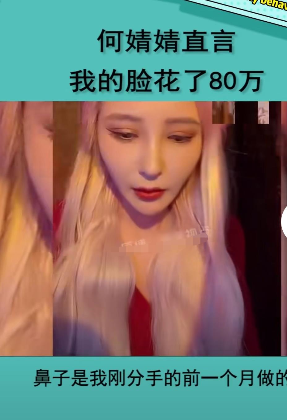 何婧婧在一次直播间被网友指责:“脸不高级”。听到这一评价何婧婧瞬间就火了,立刻回怼网友说:“我的脸花了80万,当然高级了”。在直播间坦然承认鼻子、嘴巴、眼睛都动过了,详细到说明鼻子是刚分手的前一个月做的。