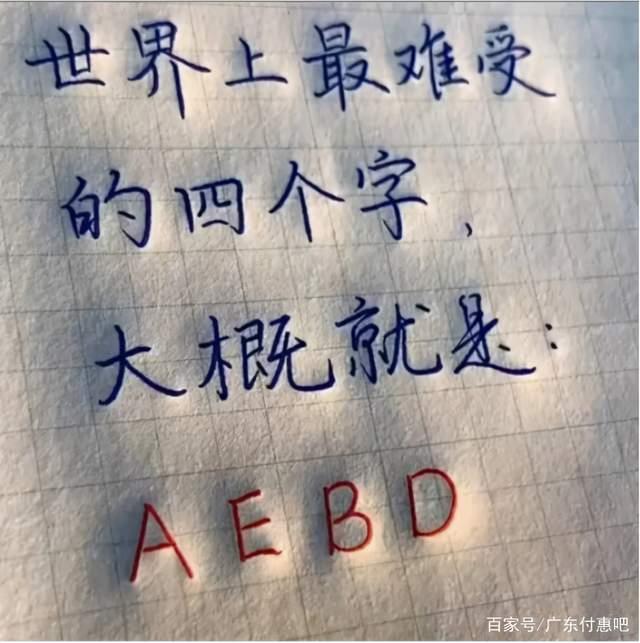 A E B D???这又是啥新式的缩写吗?乍一看我还以为是ABCD选择题,AEBD?阿尔巴德?阿尔巴德定理?这么小就懂的企业理念了吗?直到我去看了评论才知道原来是爱而不得的意思。爱而不得本身就是一个看了就难受的词,为啥要整一个大写缩写啊?我真的看不懂啊,不用你希望我了。