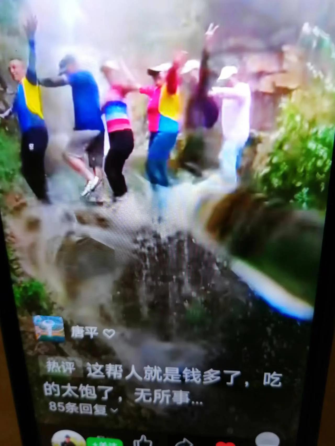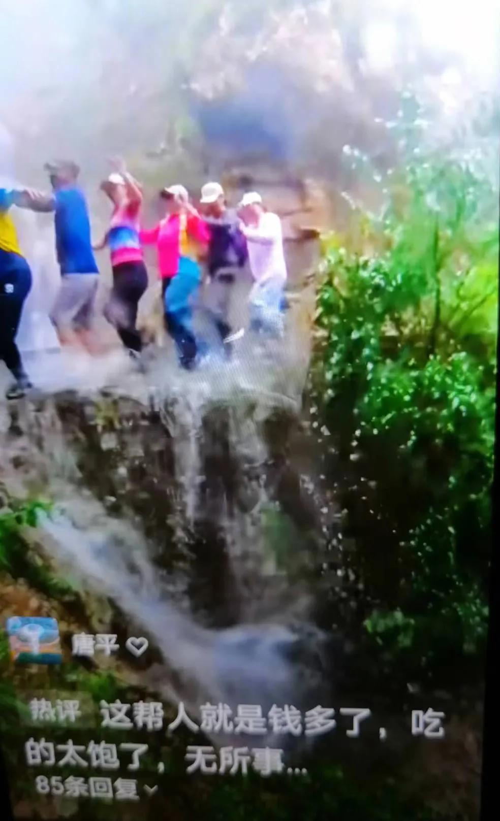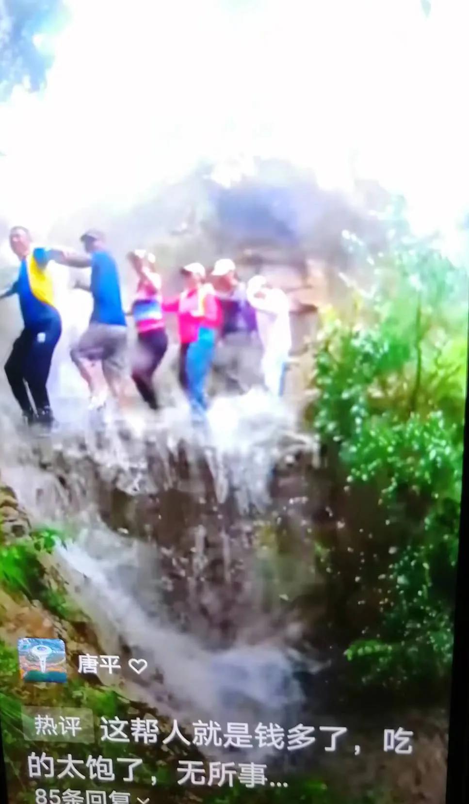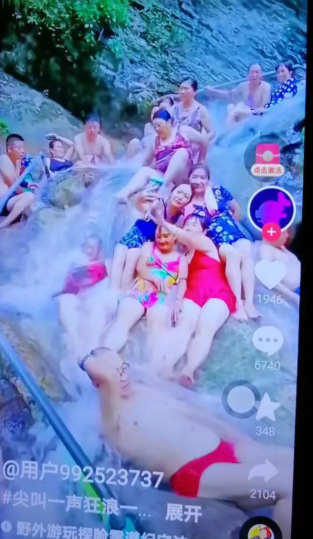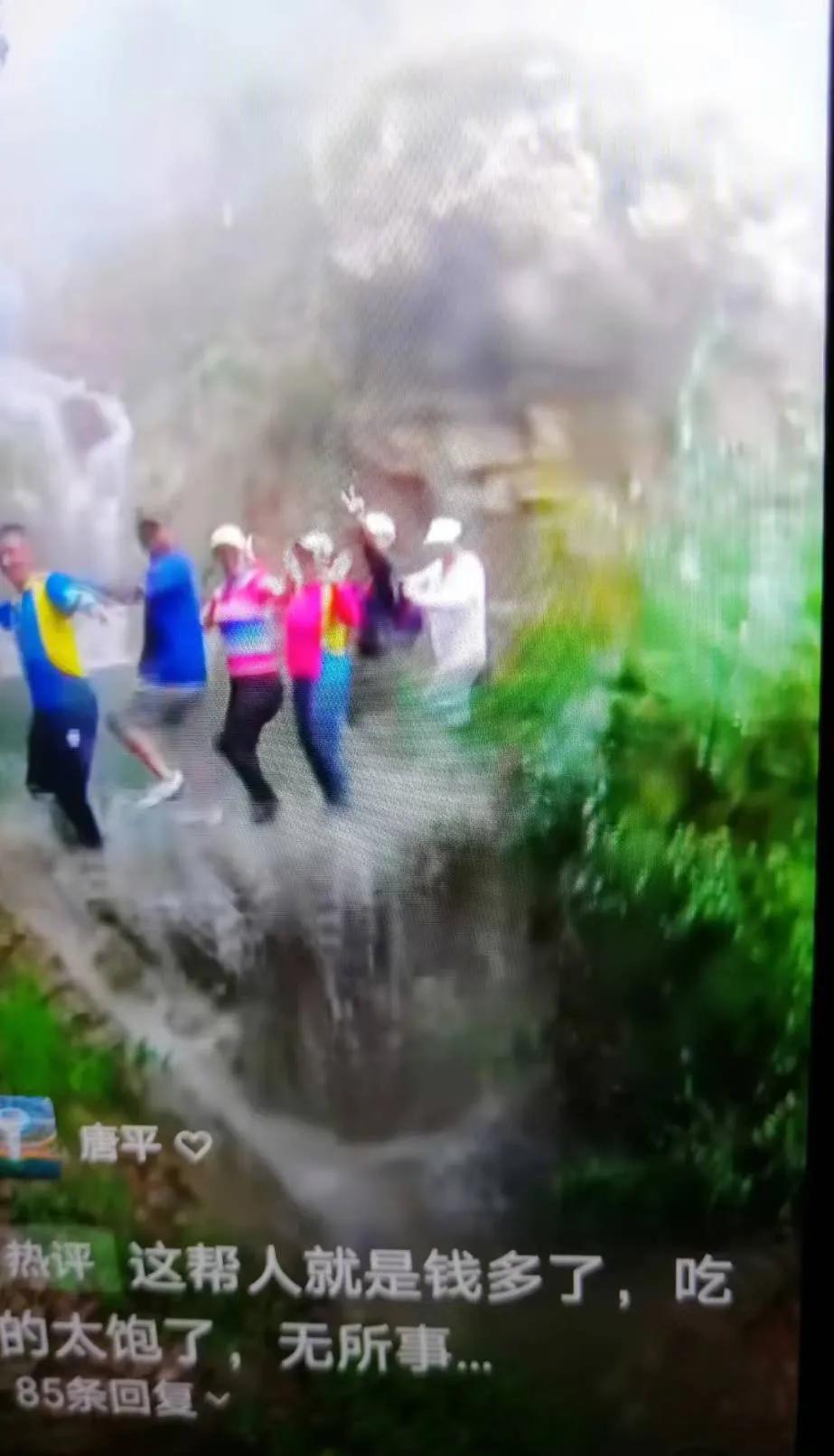瞧瞧这群大妈妈,还疯,在山沟沟里头玩的得意忘形,更让人担惊受怕。如果上游下暴雨来洪水,一个都跑不脱。像这种乐极生悲的惨事,前不久也是几个大姐姐们在河中玩的忘了爹娘,都被突如其来的洪水冲走,玩完了命。在看看大妈妈们脚下就是陡峭的山岩,不说飞流直下三千尺,起码也是飞流直下三百尺。要是玩过兴,晃来晃去,挤来挤去,掉下悬崖下,妈都叫不出一声。