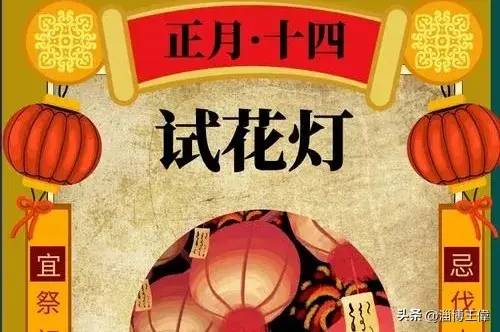 正月十四悬灯结彩,在中国民间和朝廷都有的一种风俗,在这一天人们会搭建灯棚,悬灯结彩,并做一些游艺节目的预习活动,成为试灯 以便迎接一年一度的元宵佳节。至于市面上卖灯笼的小贩,早就准备了各式各样的花灯,准备贩卖,成为灯市。台州的元宵节还有一个特别的传统,就是元宵节一般要放在正月十四过,这里也有一个典故,相传临海历史上有位知县,他的母亲是信佛的,正月十五要吃斋,但年羹本身是带荤的,于是这位知县就把元宵节的时间改到了正月十四,以避开斋戒日。