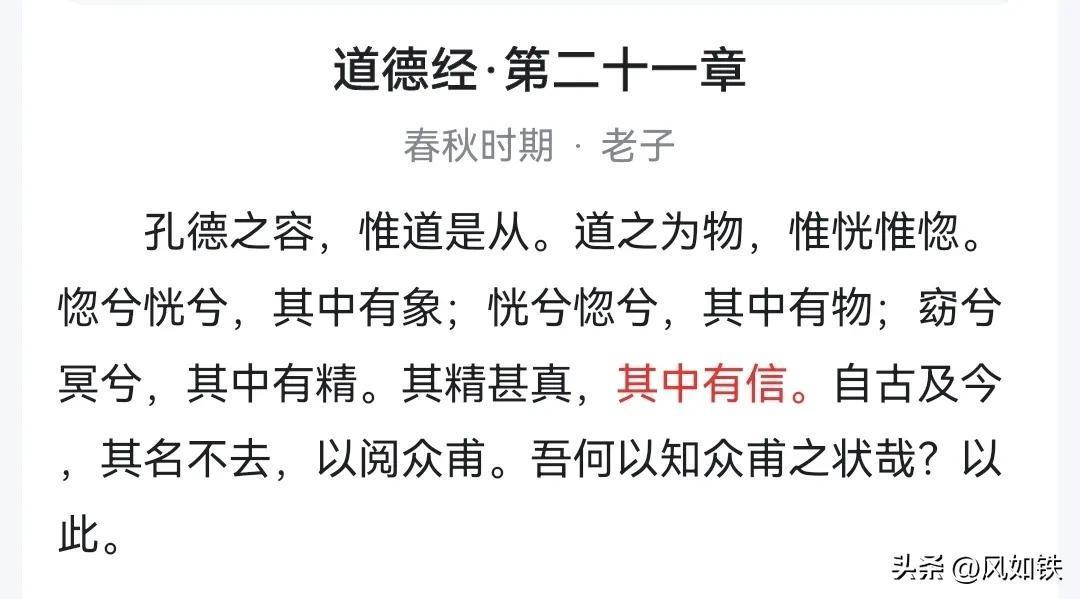 道学中的“真”来源于《道德经》中第一二十一章“其精甚真,其中有信”(见下图所示)