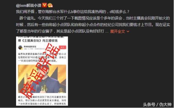 而后起小点也联手发了一条微博,表示支持小漠,还解释了花钱上主播真会玩都是造谣,假的!