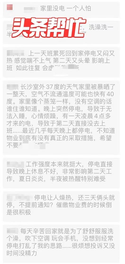 晨意帮忙丨长沙一大厦线路老化频繁停电,业主半夜外出纳凉,社区:尽快解决
