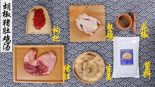 猪肚和鸡以各 500 克为例,鸡一般选用嫩鸡,如黑脚鸡或是清远鸡。
