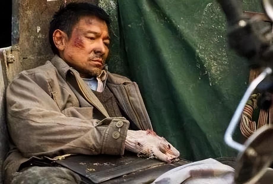任达华腹部被刺鲜血直流,闪躲过程中他的手也被划伤,满手鲜血。