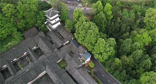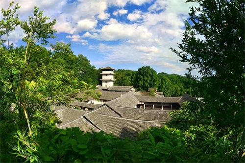 登上山坡俯视,会龙庄建筑一览无余,粉墙黛瓦与青翠丛林相依相伴。会龙庄视野开阔,可见三山腾跃,可观三流交汇,所以,古人称其为“会龙”之地。