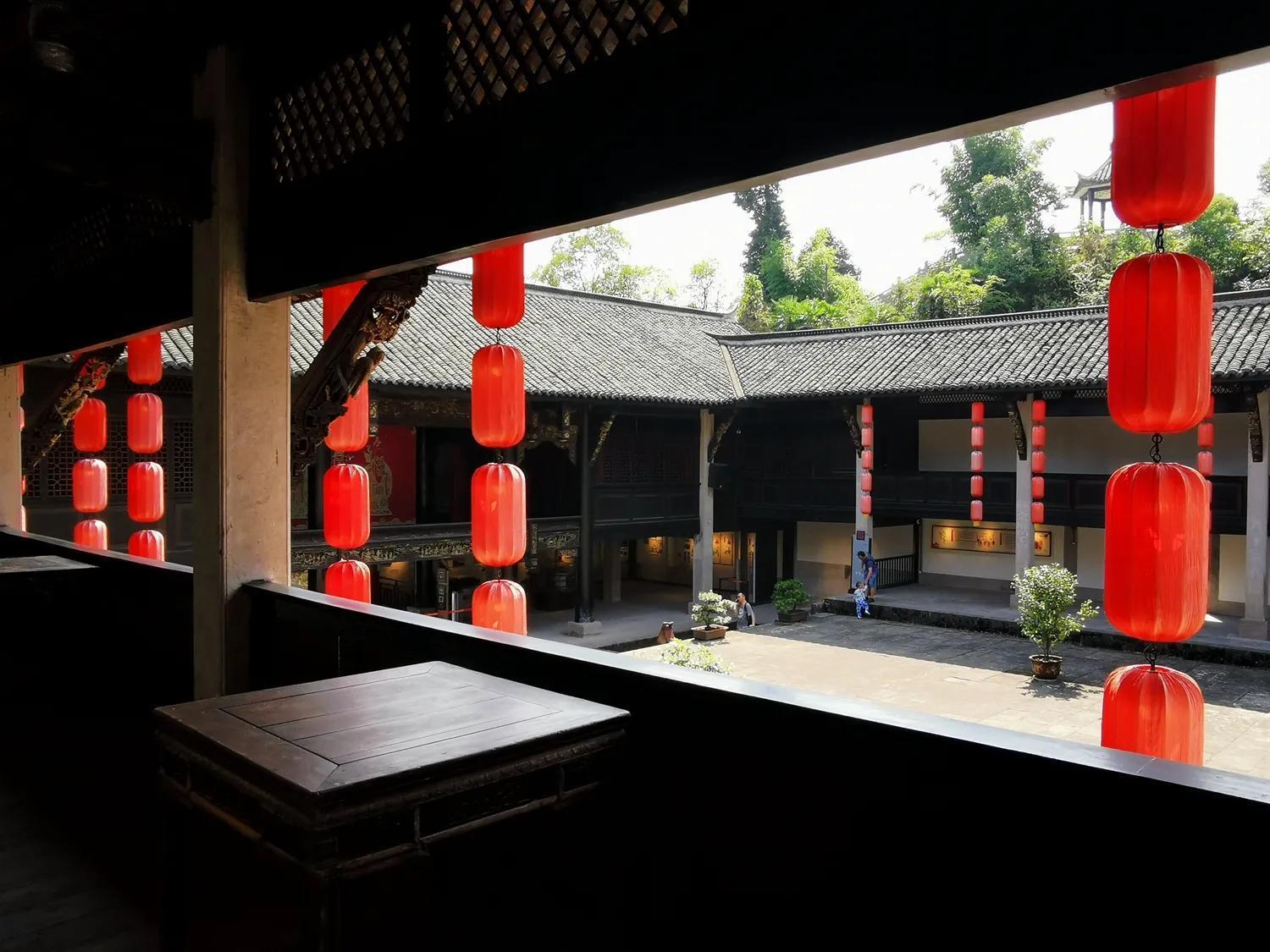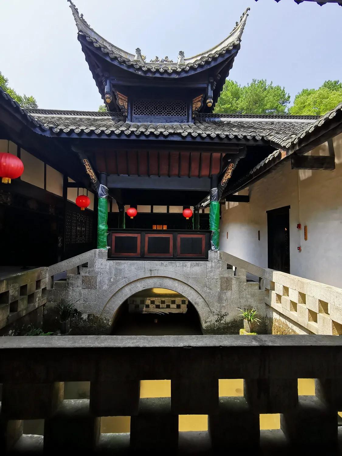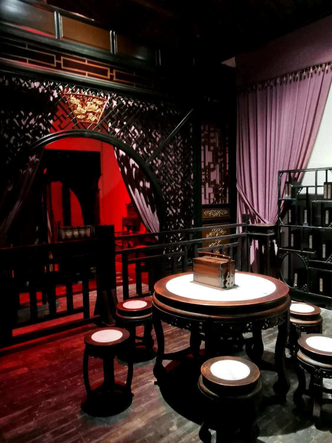 古时,女眷闺秀不能随意抛头露面,只能深居简出。内院天井建清池、石桥、亭阁,可让闺秀们在此倚栏观景散心。为了与之印证,如今,在庭院中陈设了绣房和卧室。卧室里挂了很多红绸彩带,好像布置的新房。