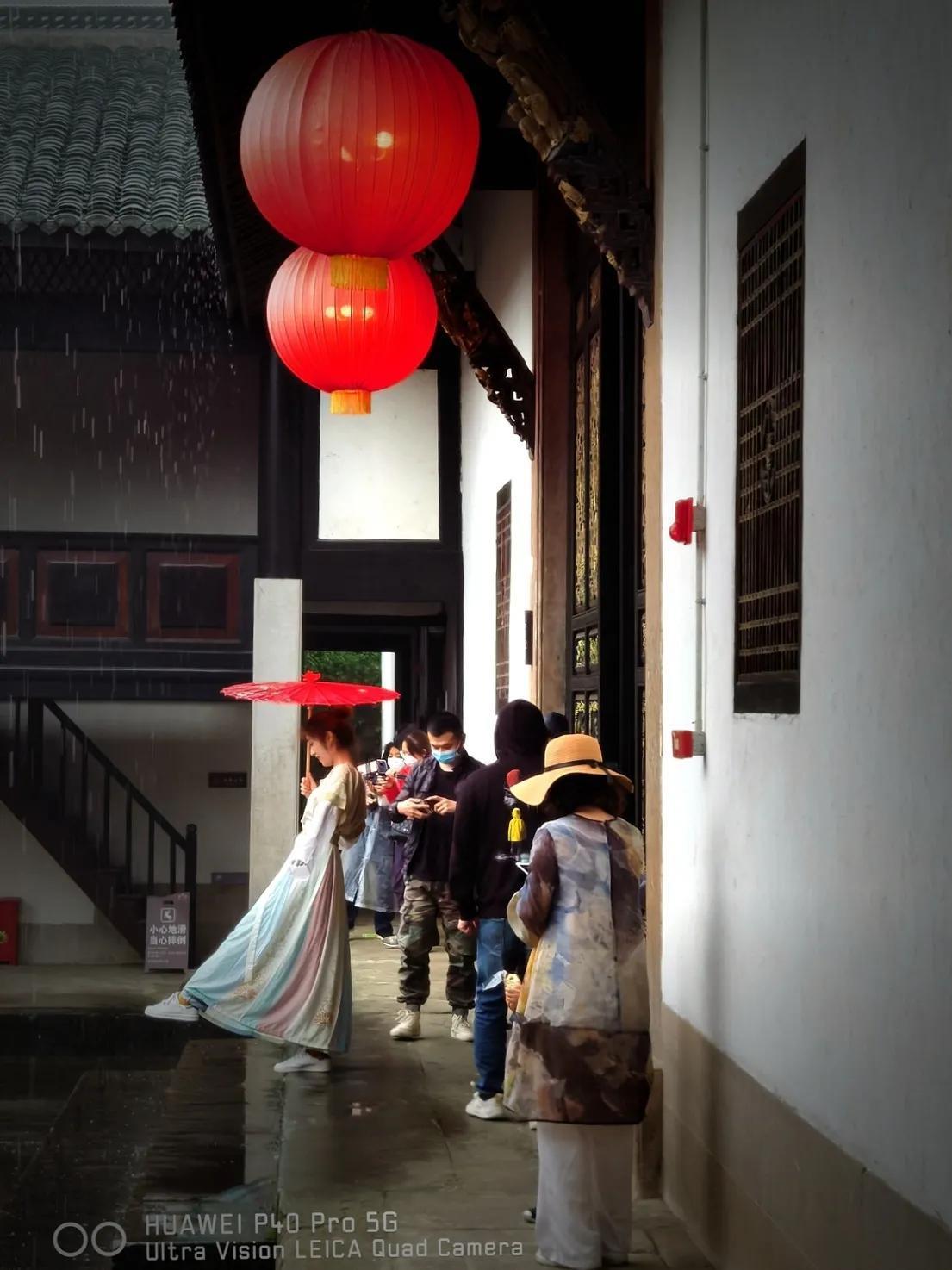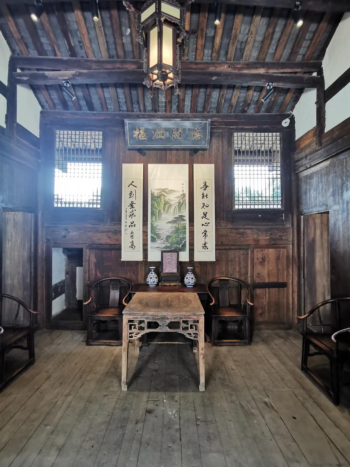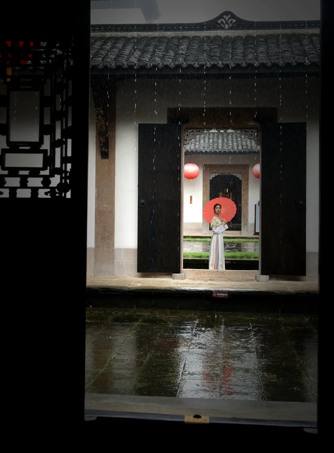 古时,女眷闺秀不能随意抛头露面,只能深居简出。内院天井建清池、石桥、亭阁,可让闺秀们在此倚栏观景散心。为了与之印证,如今,在庭院中陈设了绣房和卧室。卧室里挂了很多红绸彩带,好像布置的新房。