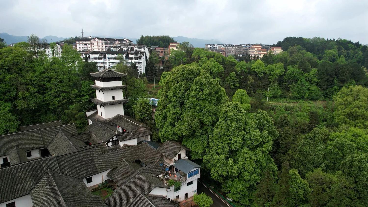 在会龙庄外,无论从哪一角度,都可以看到一座高高耸立的方碉建筑。碉楼高38米,上下五层,是巴渝乡间保存完好的最高碉楼。