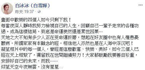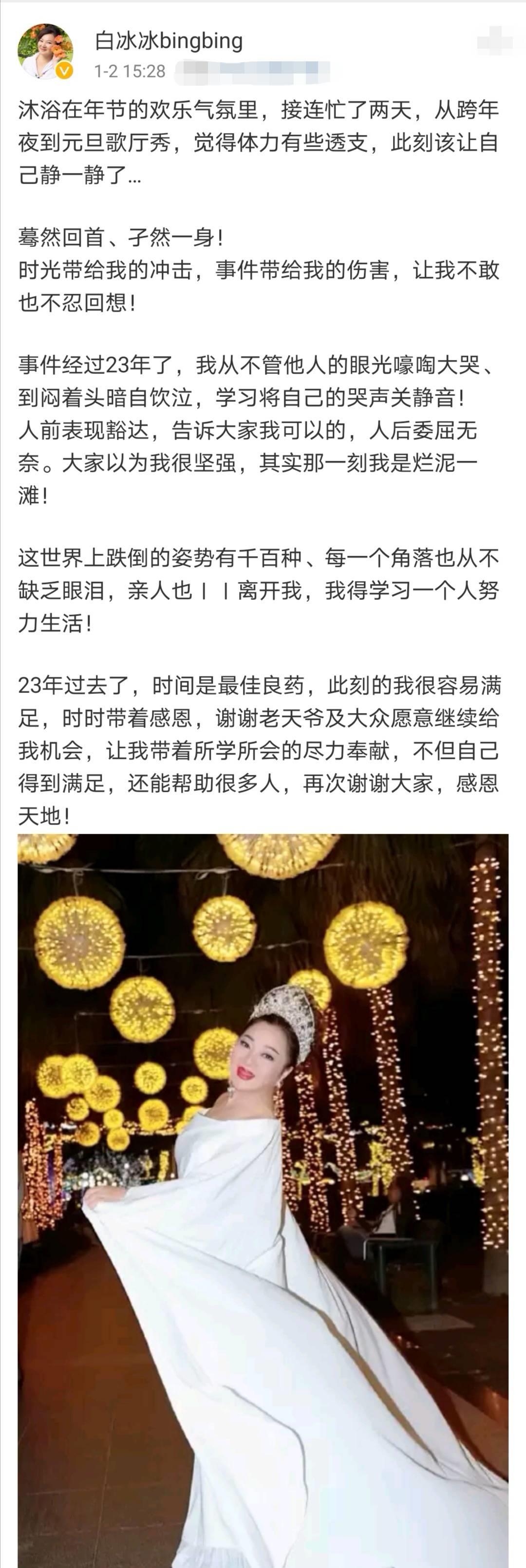 今年年初,64岁的白冰冰还在社交平台发文表达对生活的感恩。