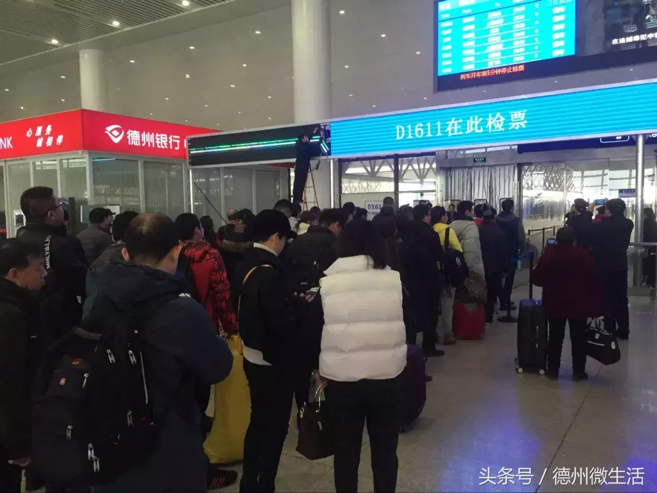 ▲9点04分,在德州东站乘坐首列石济客专D1611高铁的旅客检票进站