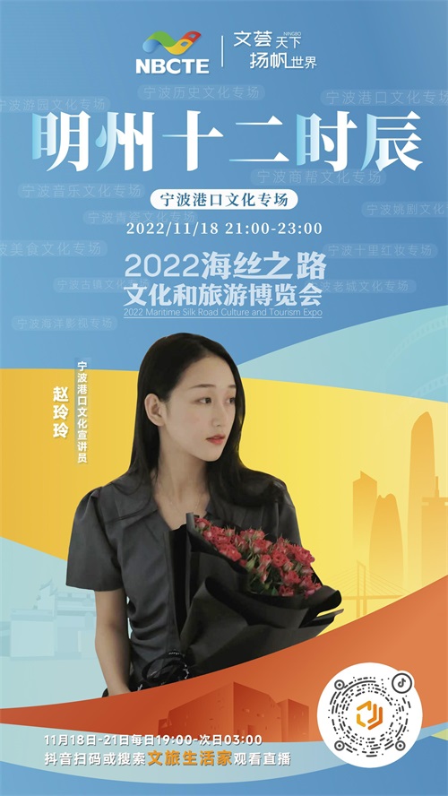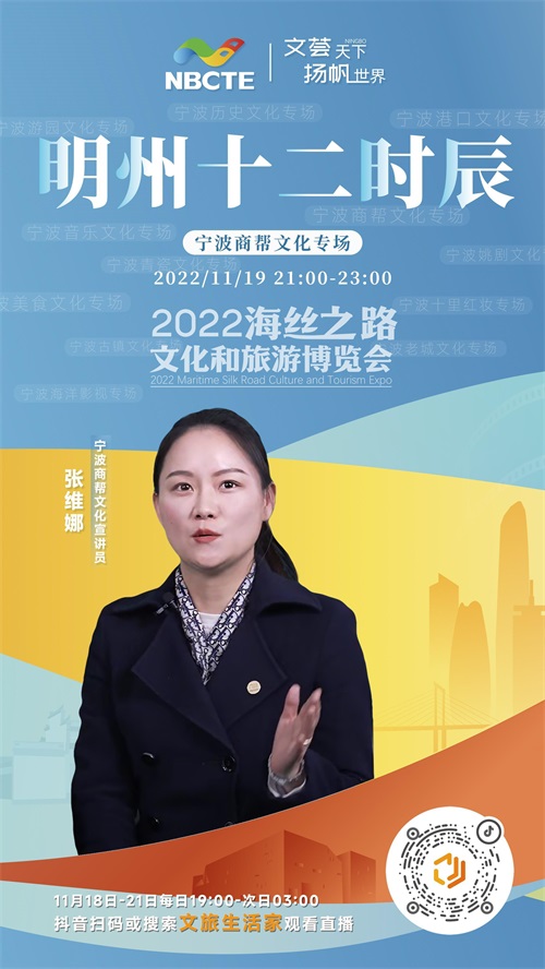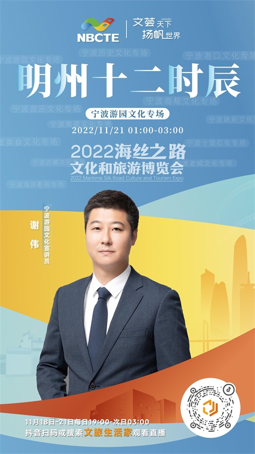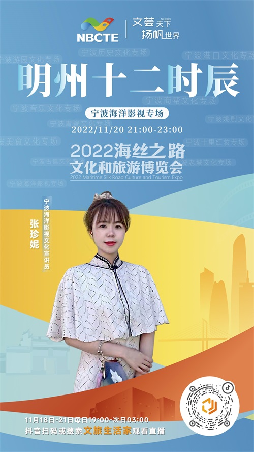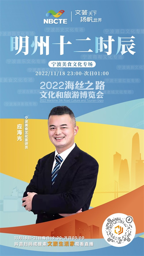 2022海丝之路文化和旅游博览会线上活动皆已启动,“随梦到明州”“千里共明州”““阿拉山海精”主话题互动活动”获得了广大群众的青睐,每晚的直播间都热火朝天,好不热闹,在大家热烈讨论声中,本次文博会最为精彩的“明州十二时辰”即将来袭!11月18-11月22日每日晚7点至次日凌晨3点上抖音搜索:文旅生活家,点击该账号头像收看直播。我们将一同前往宁波市10个直辖区欣赏、品鉴当地独特的风味,感受当地的风土人情。