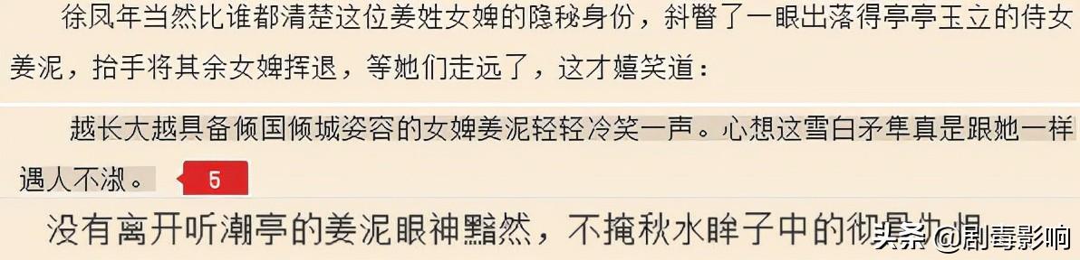 除此外,对于颜值方面的质疑,私以为李庚希是比较符合原著的,书中的姜泥并非白狐脸南宫仆射或者陈渔那种闭花羞月沉鱼落雁一般的姿色,没记错的话,徐凤年为之评分90文,可想而知,抛开徐凤年主观印象不谈,姜泥并非最好看的一位,与世子殿下投缘却是不争的事实。