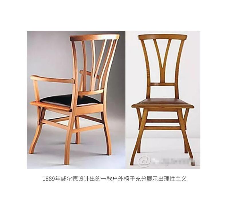 威尔德设计的家具,线条简单,意象而有情感。他不像法国设计师以那么直白的方式借鉴自然,反而是使用委婉含蓄的手法表达。所以作品中的纹样虽然模仿大自然,但是却看不到直接从自然中临摹的痕迹。因为他将对自然的模仿升华成更加生动的创作,并赋予自身的情感于设计之中,所以其作品在新艺术的基础上更具有现代感。