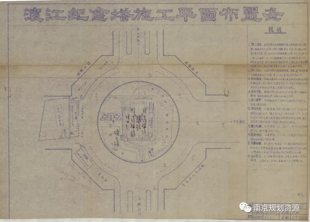 我局城建档案馆馆藏档案:渡江纪念塔施工平面布置图