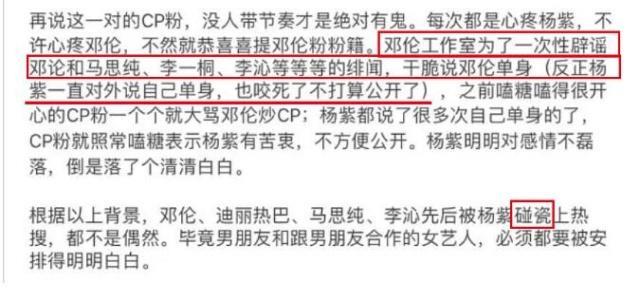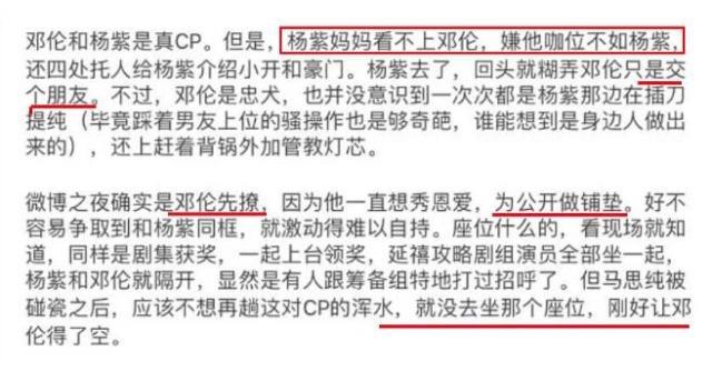 对此,爆料人还在后文解释称,是因为杨紫的妈妈看不上邓伦,嫌弃邓伦的咖位不如杨紫,杨紫目前是娱乐圈的一线明星,但是邓伦还算不上是一线明星。