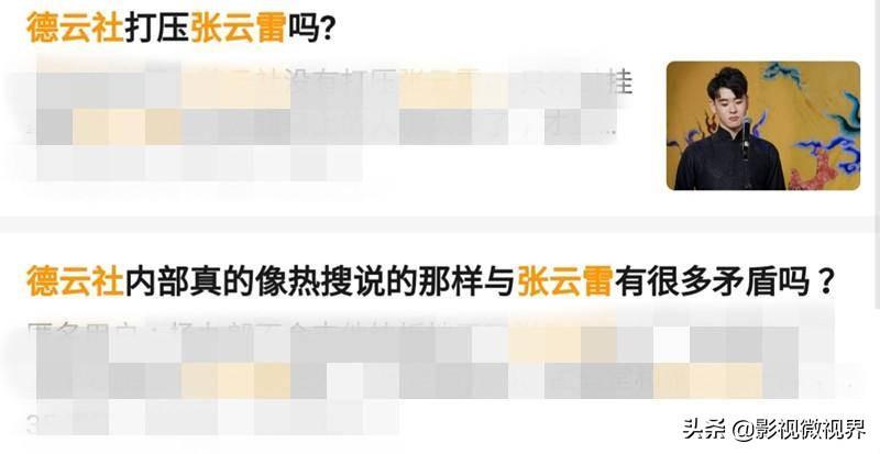 随便在网站上一搜就会搜出一堆问题。比如说这个张云雷最近发生了什么事?德云社真的有看起来这么和谐吗?德云社对张云雷到底是什么态度?还有问题更加夸张写道,德云社是在打压张云雷吗?