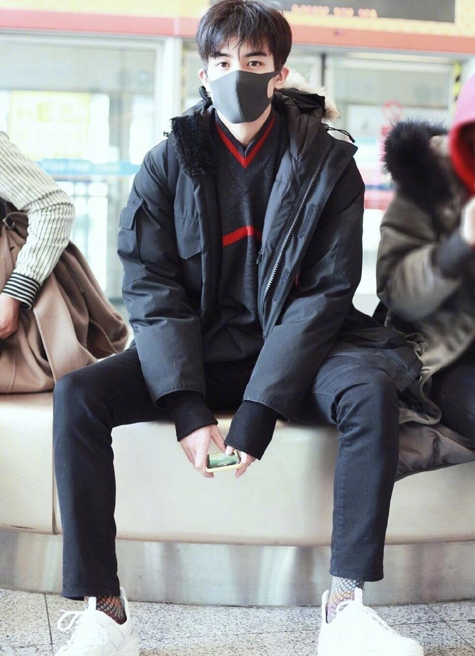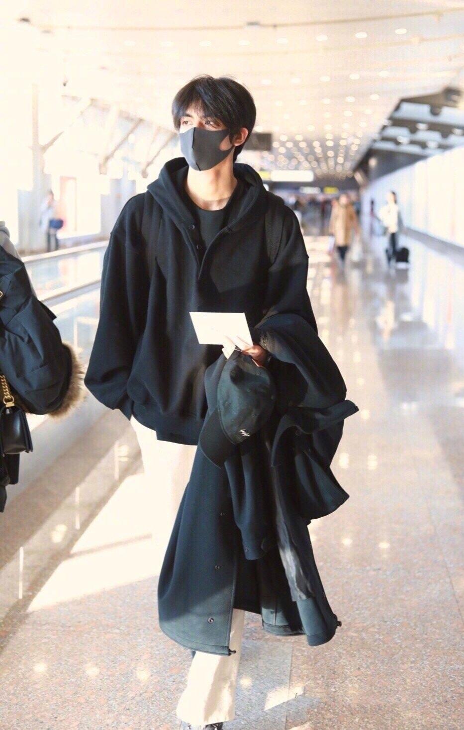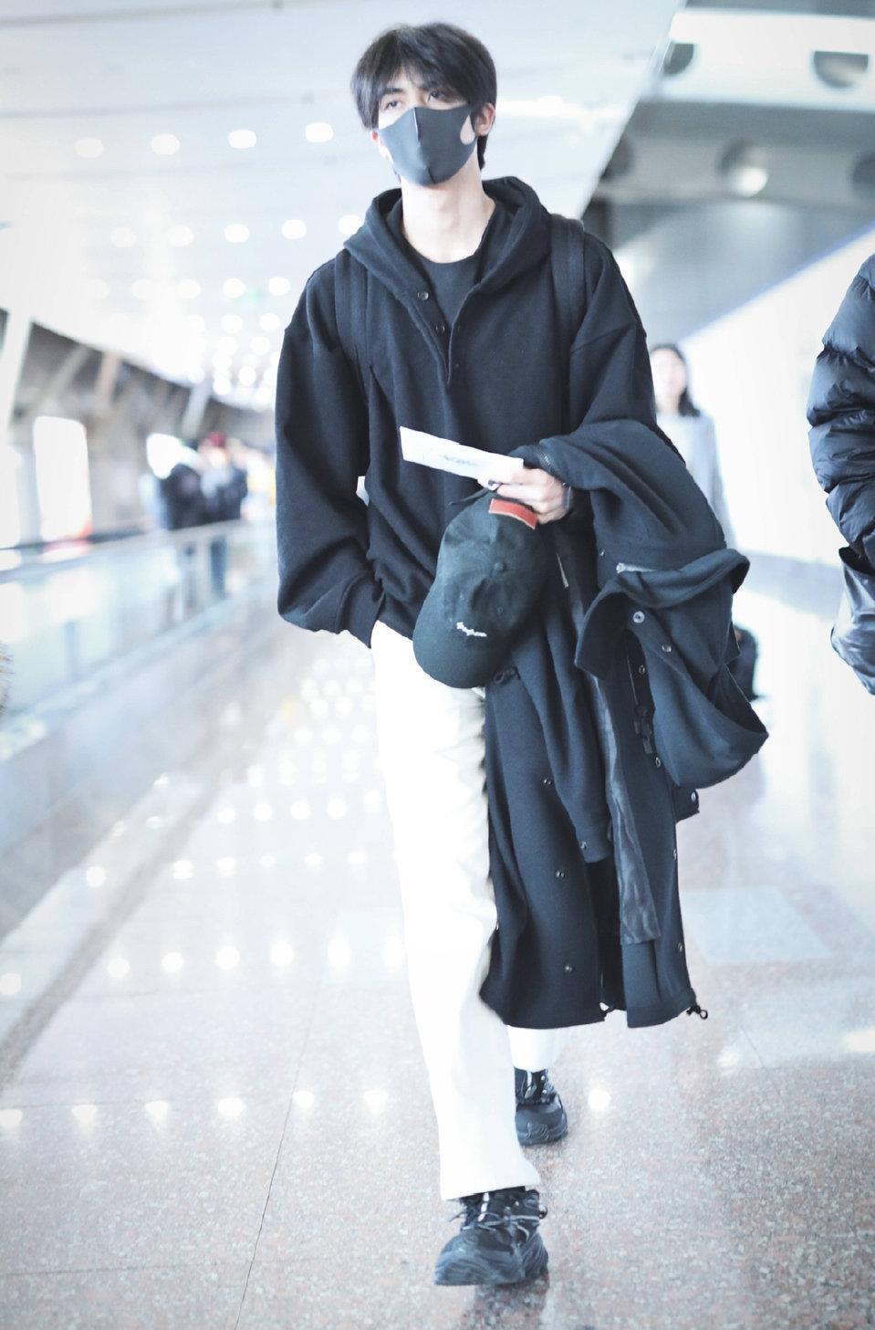 说到宋威龙的卫衣,在他的机场私服中就出现了非常多的卫衣,基本上都是黑色的卫衣,就像上面这一款,带有字母的黑色卫衣,外搭黑色夹克,满满的黑色,不会给人一种沉闷感,反而带给人人一种满满的活力,黑色的卫衣搭配更显脸的白净,非常的帅气。
