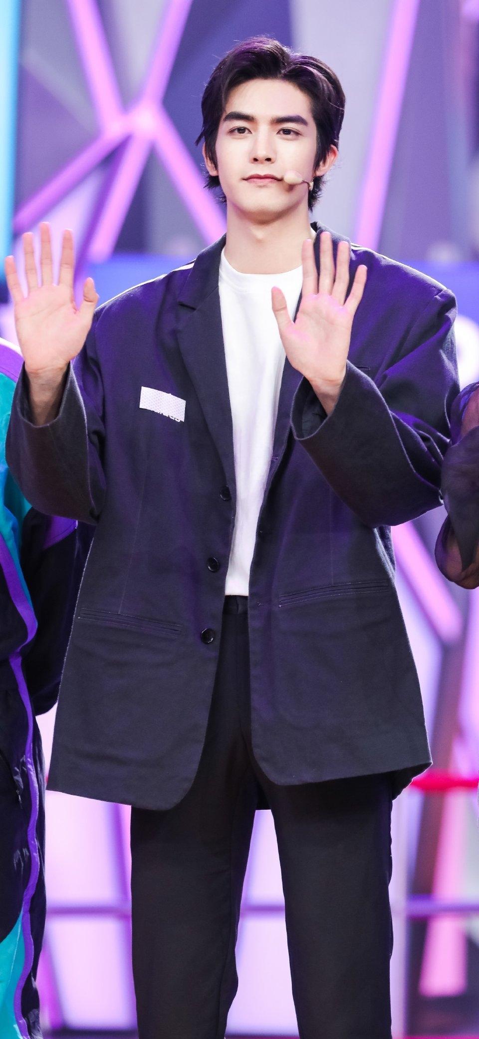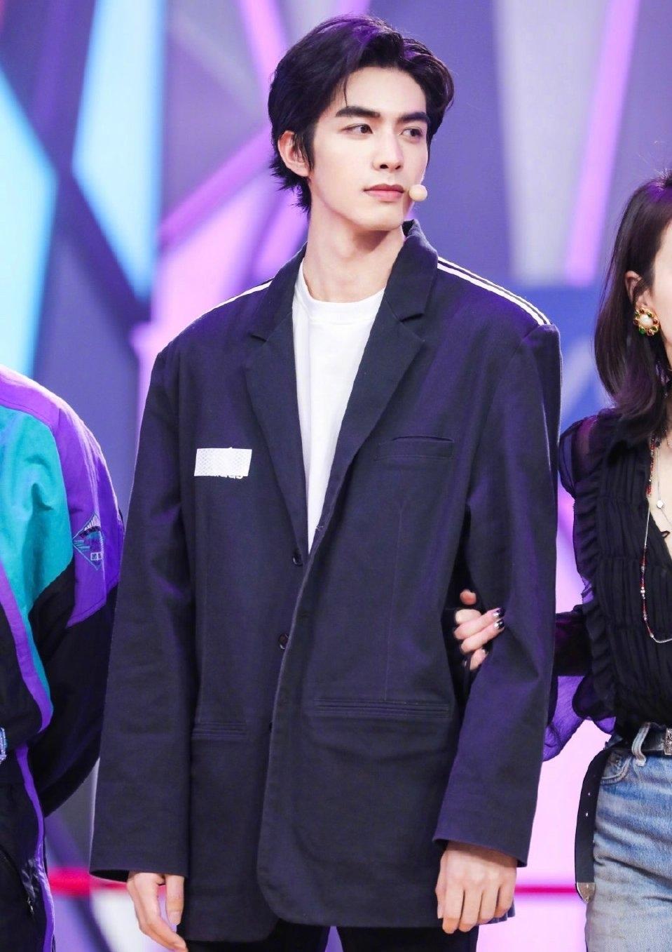 宋威龙录制《快本》,185cm好身材穿搭黑色白纹西装超A,长腿太长