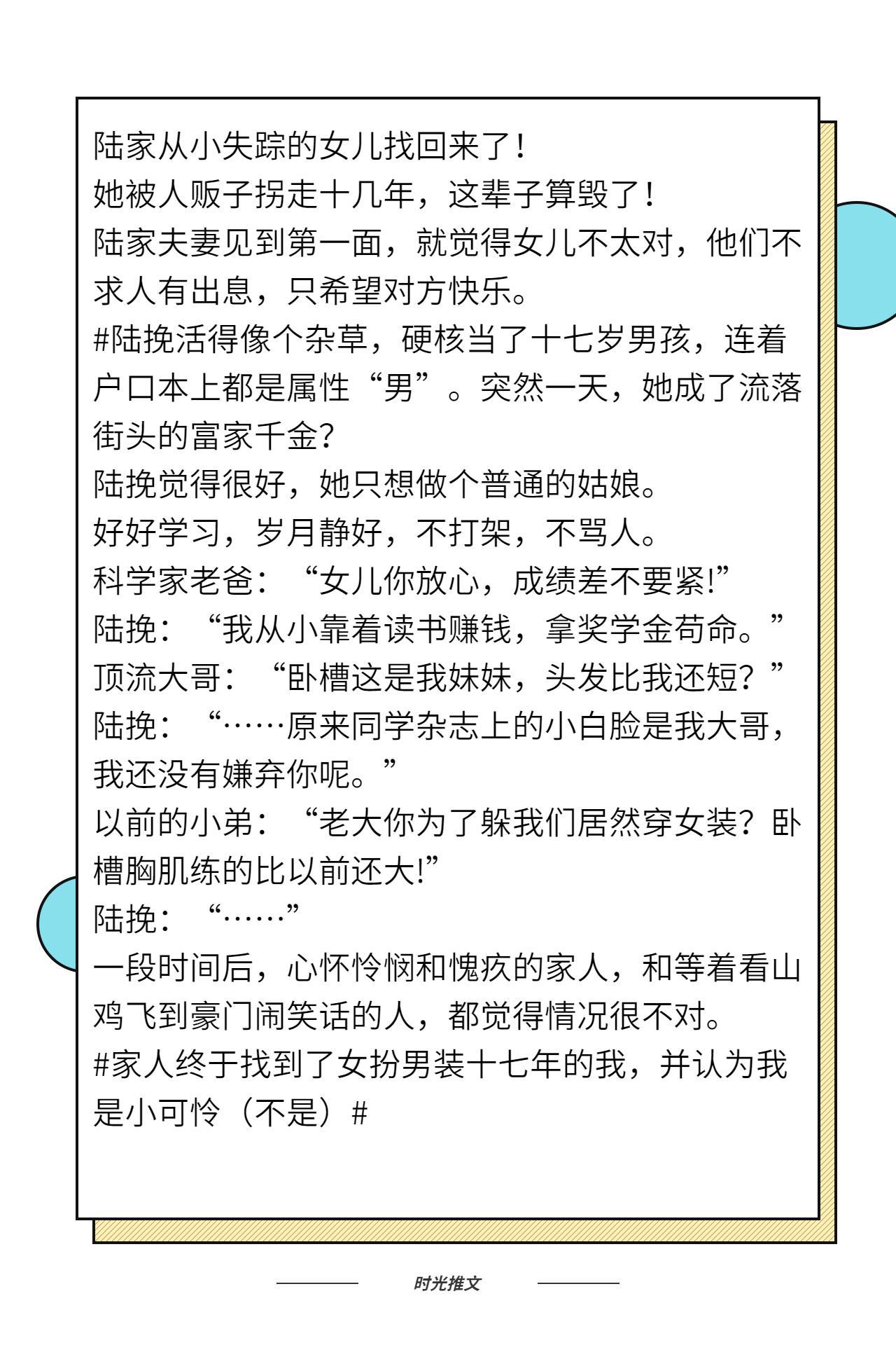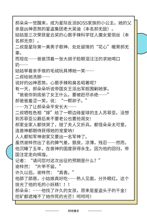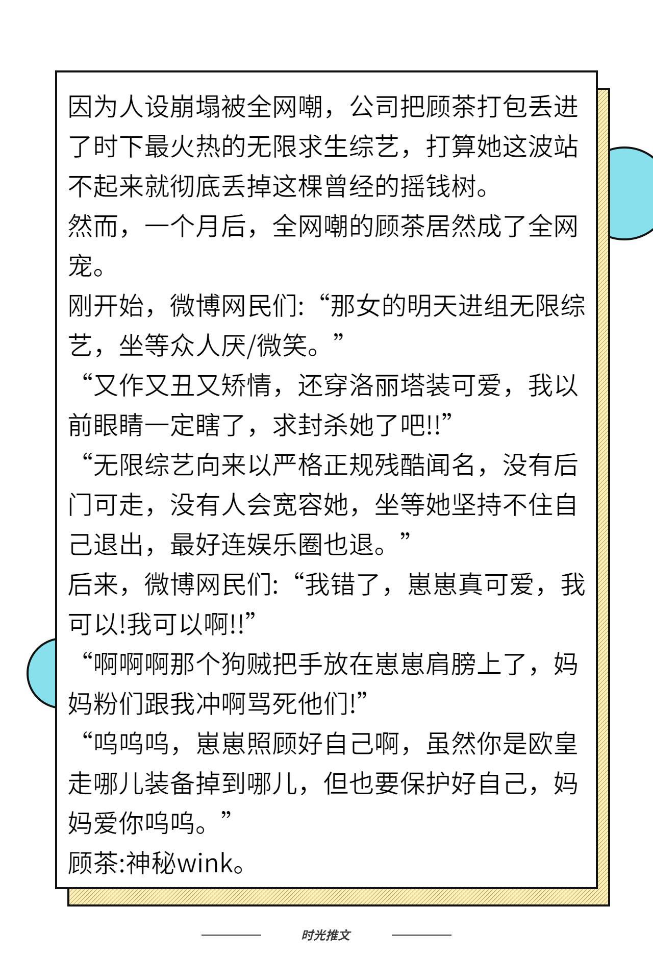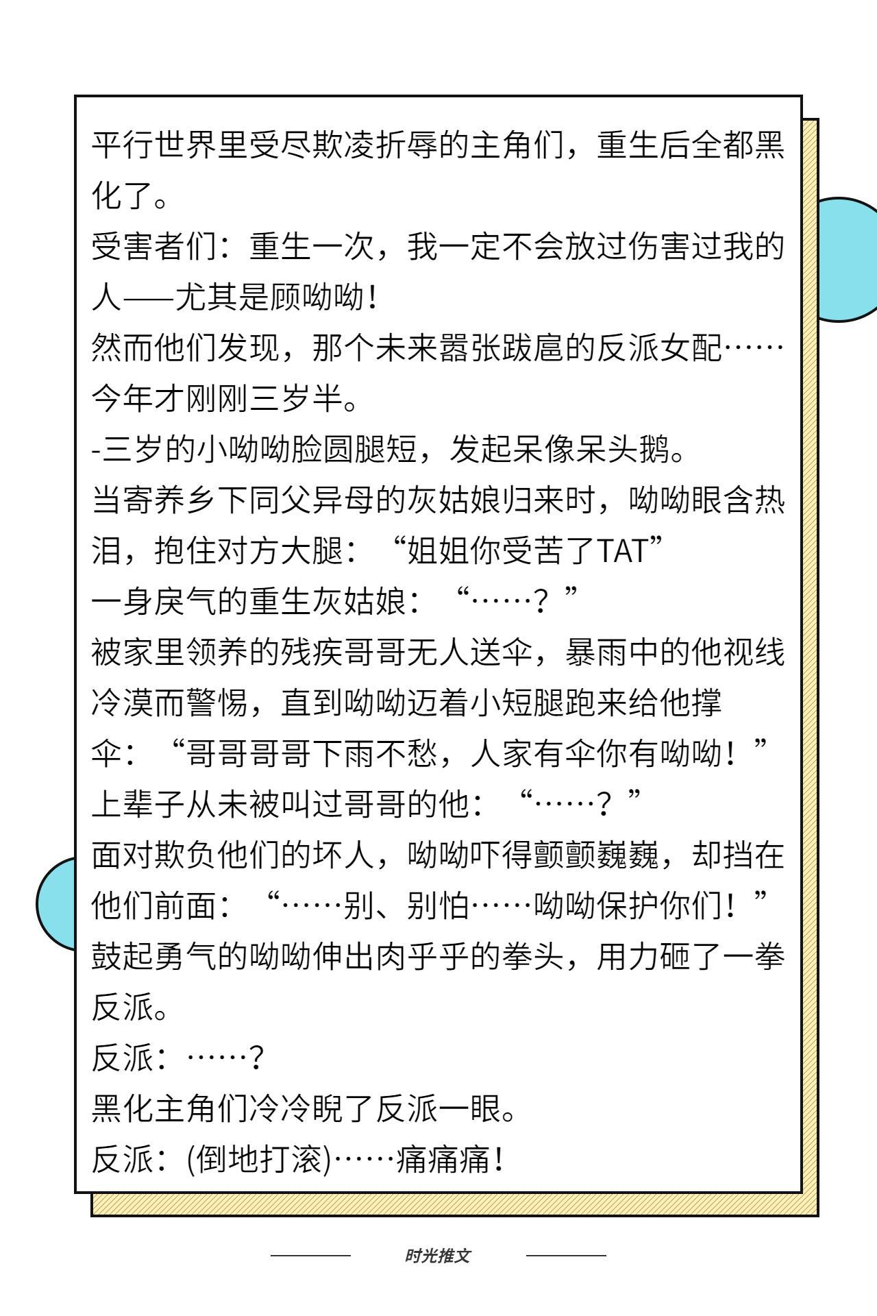 今天给大家推荐的是一波团宠类型的文,有喜欢的小伙伴,那就继续往下看吧,如果本期没有喜欢的,可以关注时光,查看更多往期小说推荐~~