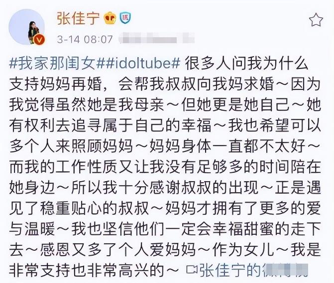 这让他们母女的生活有些困难,她的母亲怕再婚会对张佳宁不好,就放弃了这个想法,只能靠自己赚钱养家。