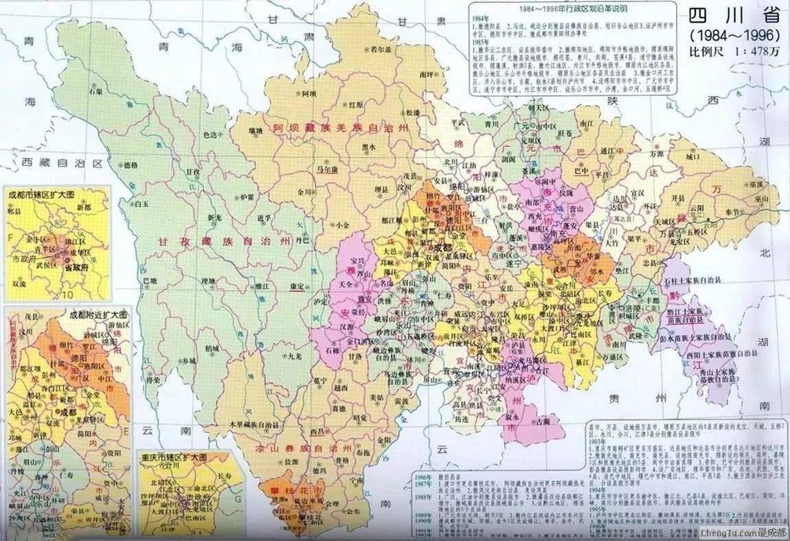 2.当时的四川省面积很大,有57万平方公里,管辖的行政区域也在当时无省份能及,共下辖23个地级行政区、221个县级行政区,是我国当时管辖县级以上行政区域单位最多的省份。什么概念呢,如果跟东部的省份比较,浙江省、江苏省、广东省、山东省、福建省等沿海省份,面积全部低于20万平方千米,也就是说,当时的四川省虽然管辖两大高原藏区,但是抛开这两个高原藏区,四川省当时的面积依然是东部沿海省份的2-4倍。