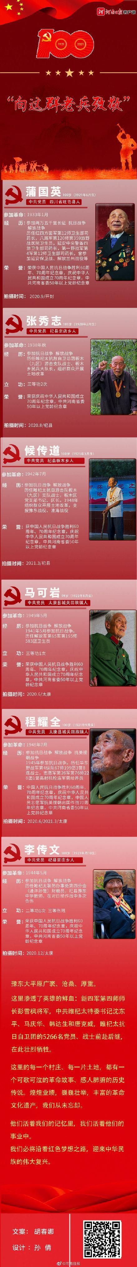 【民族脊梁是什么?是他们!】6月30日,在三门峡中国摄影艺术馆展出的《百年风华 人民至上——庆祝中国共产党成立100周年系列摄影展》中,《民族脊梁》系列摄影作品展示了在豫东战斗过的至今还健在的百位老党员、老战士。峥嵘岁月里,他们挺身而出,浴血奋战,用舍生忘死的精神拼搏出今天的幸福生活。向他们致敬!(记者 胡春娜 )