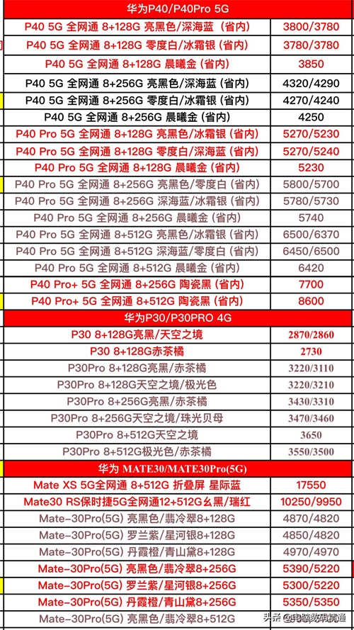 华为全系列手机最新更新的进货价格曝光(6-1)
