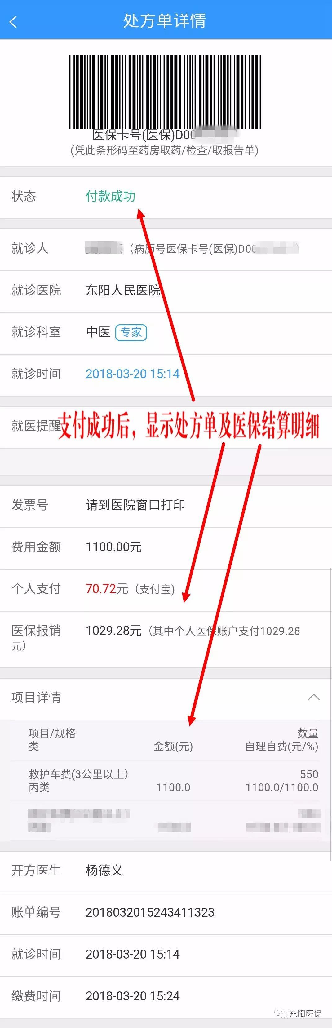 通过“东阳人社”APP,你可提前在家选择就诊医院和医生进行预约挂号,且支持医保结算。医院就诊时,出示APP中的挂号单即可直接就医,医生开出处方后,参保人在诊间通过手机APP进行医保结算操作,同时,个人自费部分通过丰收e支付、支付宝或微信一并完成支付。只要一部手机,一个“东阳人社”APP,就能快速完成就诊缴费,无需再跑收费窗口排队刷卡缴费。