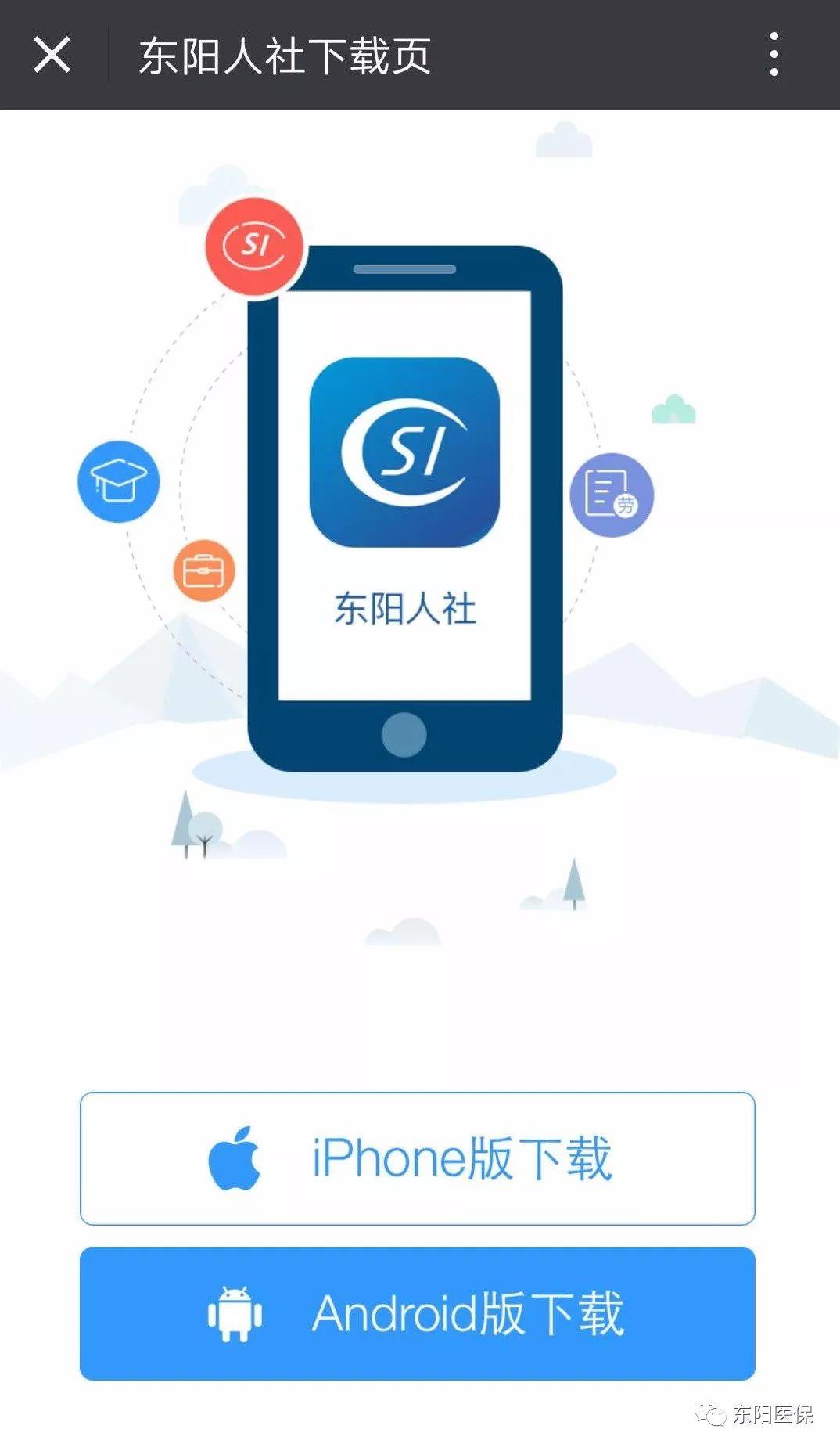 目前,市民可通过扫描下方二维码下载安装(苹果手机用户也可在App Store应用商店搜索“东阳人社”下载)“东阳人社”APP;进入“东阳人社”APP后使用身份证号码及社会保障卡卡号进行免费注册并绑定手机号码;登陆账号,通过人脸识别完成实名认证(须支付宝支持),设置医保支付密码开通移动支付;再点击“预约挂号”或者“就诊缴费”即可实现医保预约挂号及医保移动支付。