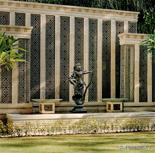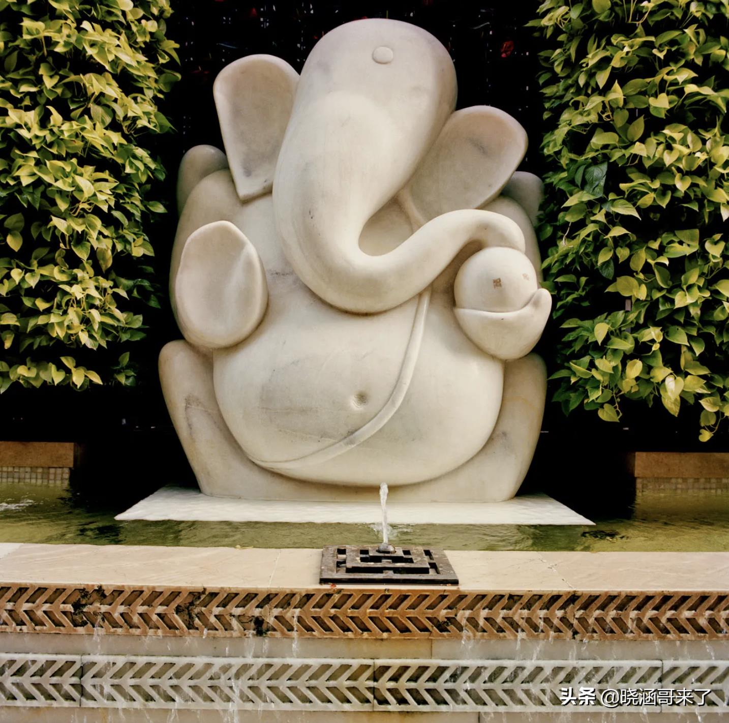 在印度,大象是圣兽,象头神是印度湿婆神的儿子,但这个大象雕塑不是传统印度雕刻法,反而是现代艺术雕法,说明首富的品味不一般。