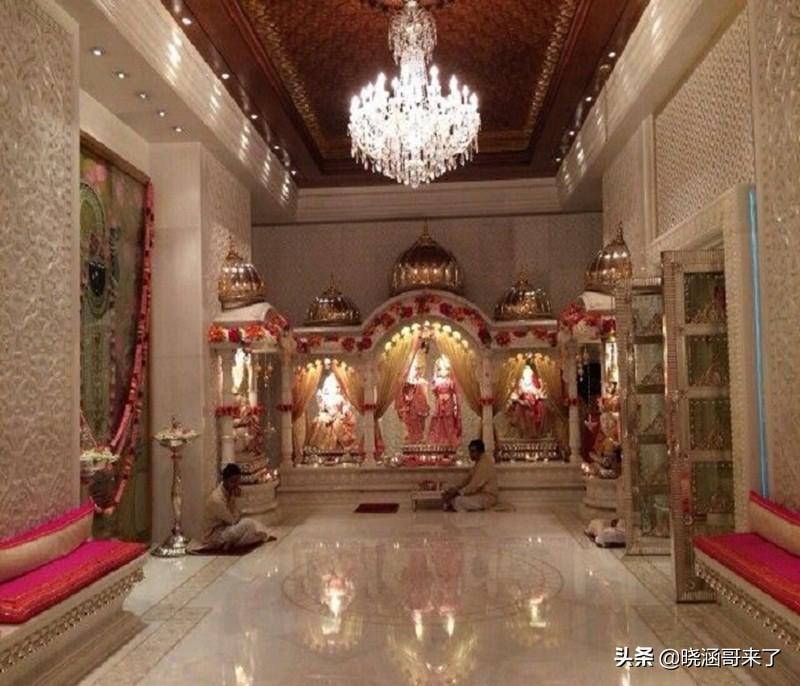 安巴尼的妻子在豪宅内部的寺庙中,真的是金碧辉煌。