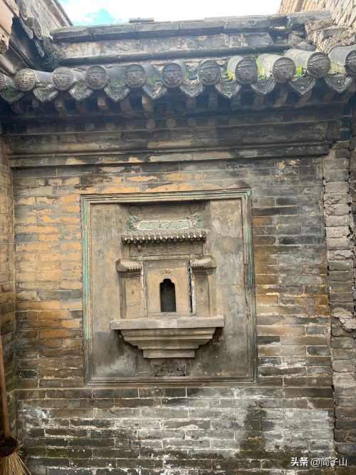 晋北民居的典型布局,进大门正对照壁,照壁正中央供奉土地爷。土地爷府经典对联:地内出黄金;土中生白玉。对于世代以土地为生的大多数居民来讲,土地承载的是全家人的生计,家家供奉土地神也就不足为奇了。