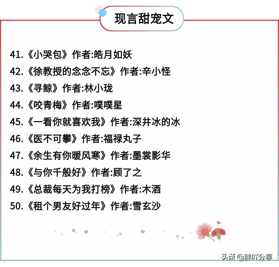 今天给大家盘点汇总了50本现言甜宠文,都是又宠又甜的哦!