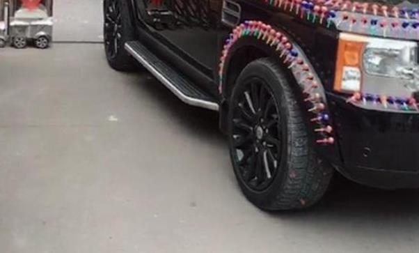 有位网友就分享了一对很有意思的新人,他们安排的婚车头车是一辆霸气的路虎,价值高达百万,开在前面很有气势,而最让人感觉有意思的就是车身上的设计了,一般的车都是鲜花之类的,而这辆百万的路虎,车身上却都是棒棒糖,而在汽车的引擎盖的中间,则是用很多棒棒糖摆放成了一个心形,看起来特别有美感。