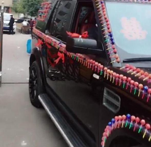 百万婚车路虎车身挂满棒棒糖,公开“撒狗粮”,网友:新娘爱吃
