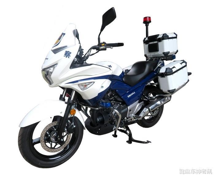 车辆型号确实用了GW300J来命名(J代表警用车的意思),并且加装了专业灯具、喇叭和三箱。外观方面与之前猜测得差不多,只是比谍照多了发动机下护板,整车还是使用了老款GW250S版的底子,相比街车款增加了车头整流罩,增高了车把,强化了巡航车的功能。动力部分与DR300相同,实际排量298cc的直列双缸水冷发动机,最大功率21.5kw,其它硬件部分如减震、轮毂、排气都和GW250相同。