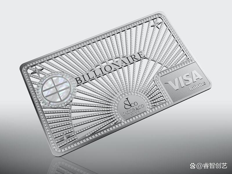「Billionaire」的发行方包括奢侈品集团Majestas与著名钟表珠宝品牌Jacob & Co.和Primavera Investments及豪华信用卡公司Insignia,卡之设计如珠宝般灿灿生辉、讲究至极,似Jacob & Co.腕表机芯般采用镂空设计,嵌有密致的钻石再饰以白金或玫瑰金。