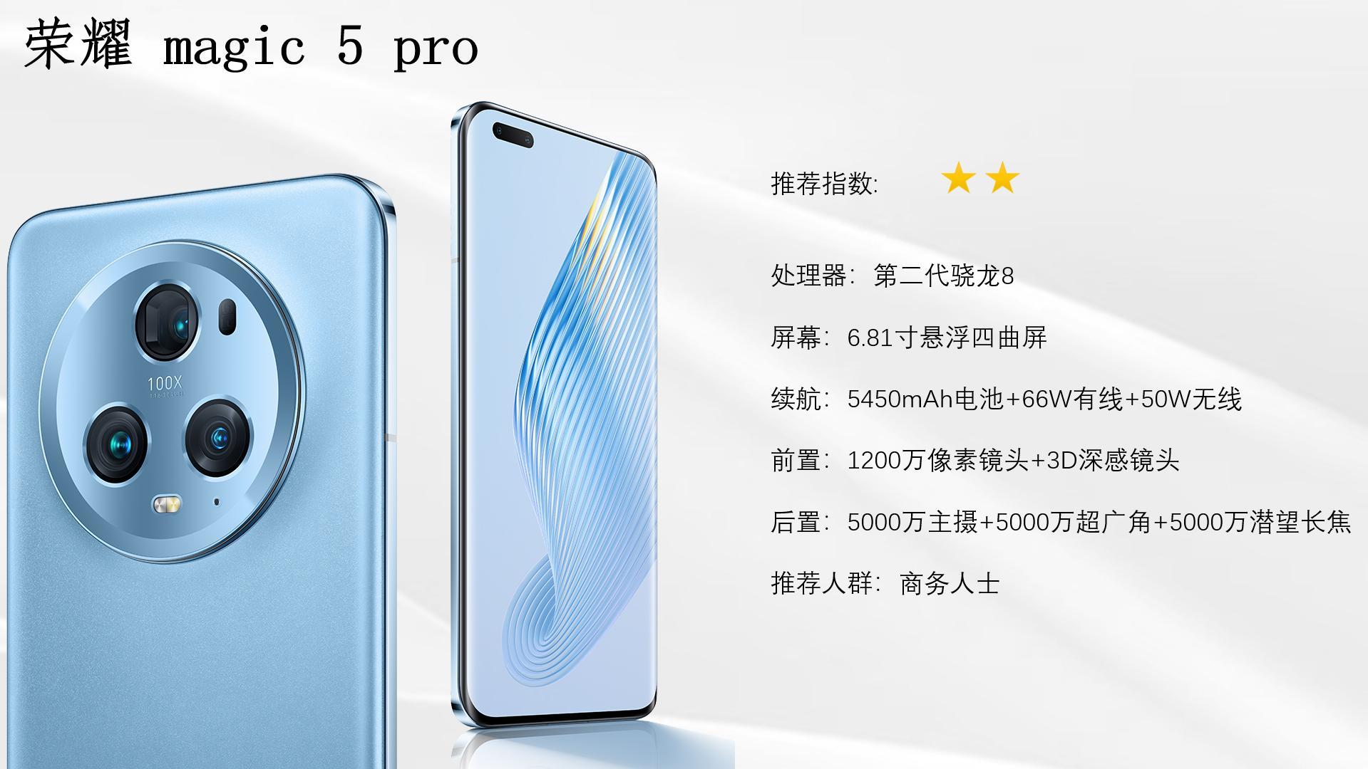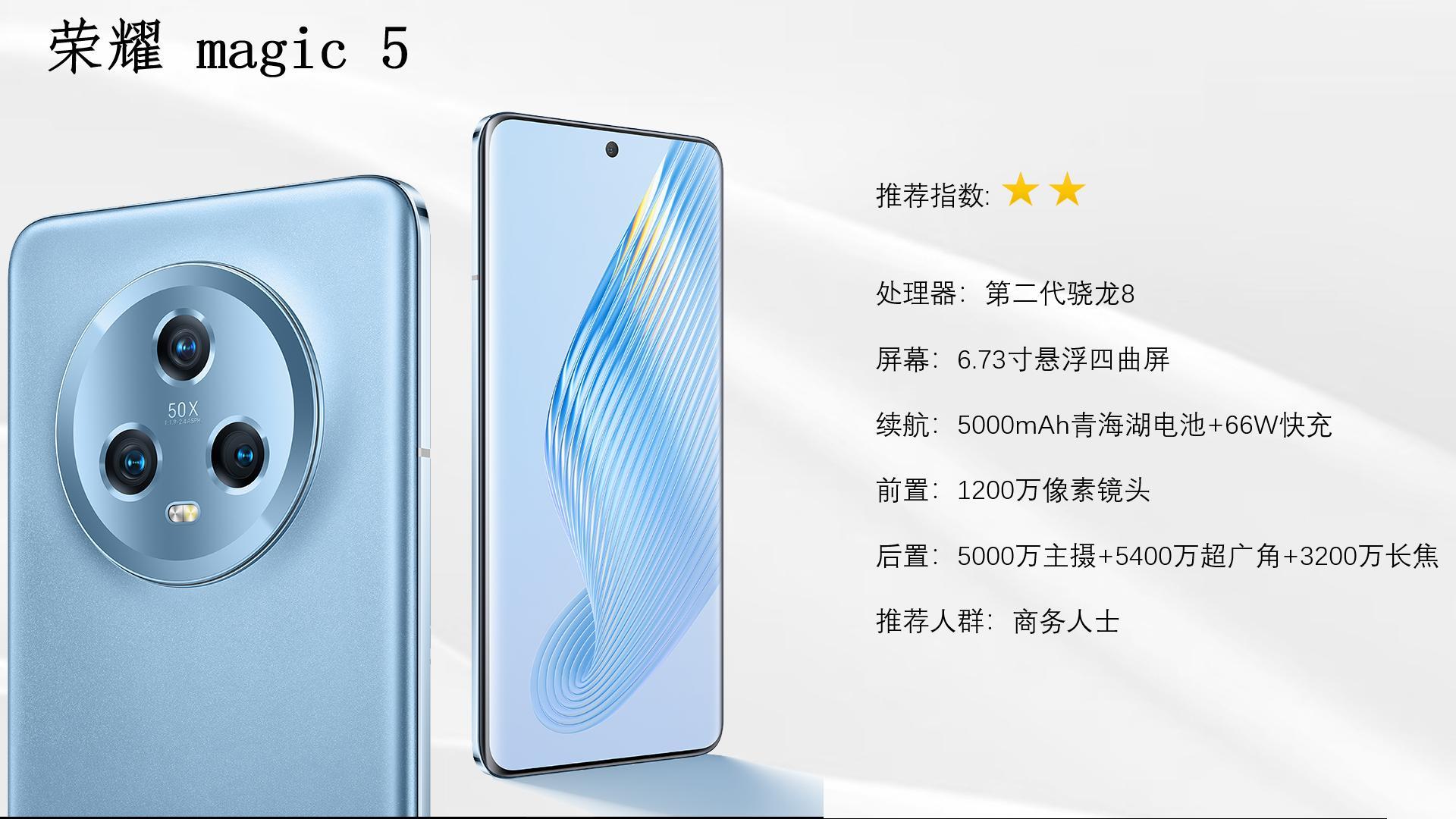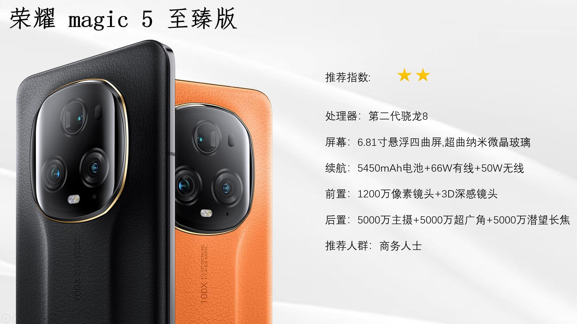 目前magic系列是荣耀最高端的系列了,目前最新的产品就是magic 5、magic 5Pro、magic 5至臻版三款产品。