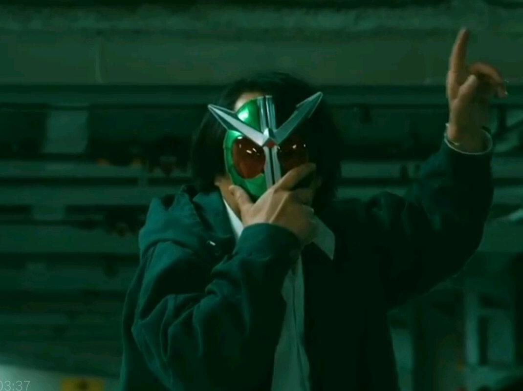 戴着假面骑士w的面具,但是摆出来的手势是假面骑士kabuto的,而这次面对的最大的敌人,是敌方组织的头部,曾经横跨三大特摄,在粽子中丢了一只手,后来变身成为全开者朱兰的人间体后,有荣升特利迦奥特曼队长的高木胜也。