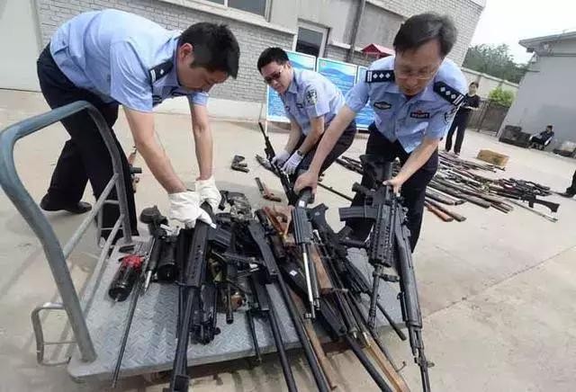 ▲2016年5月,北京警方将收缴的非法枪支入库
