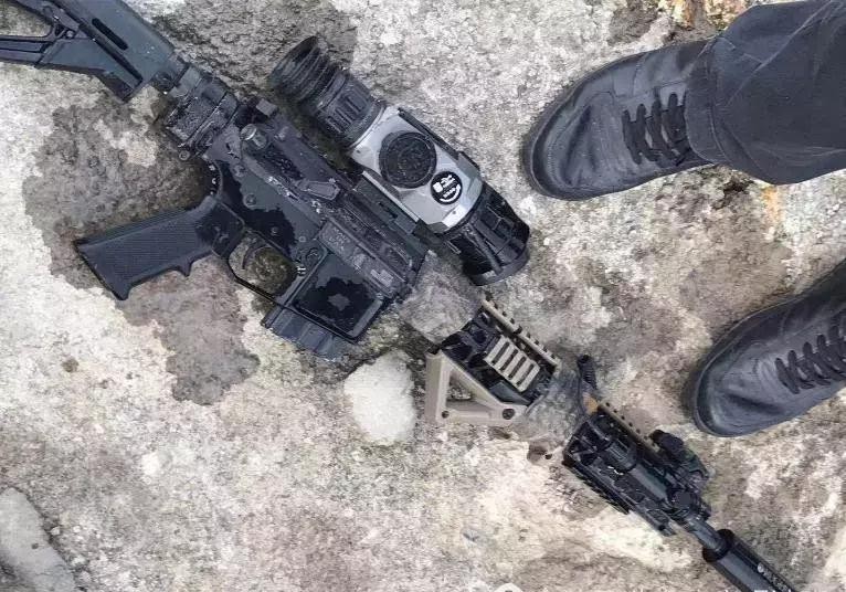 令人意外的是,原先警方认为逃犯的枪是56,结果捞起来一看,竟然是一支安装了消音器、战术导轨、三角枪托、短弹匣、前握把,甚至还有ATN“雷神”热成像仪的AR步枪!幸亏此人胆小扔了枪,如果该犯持这把改装枪作恶,警方装备95式步枪也会落于下风。